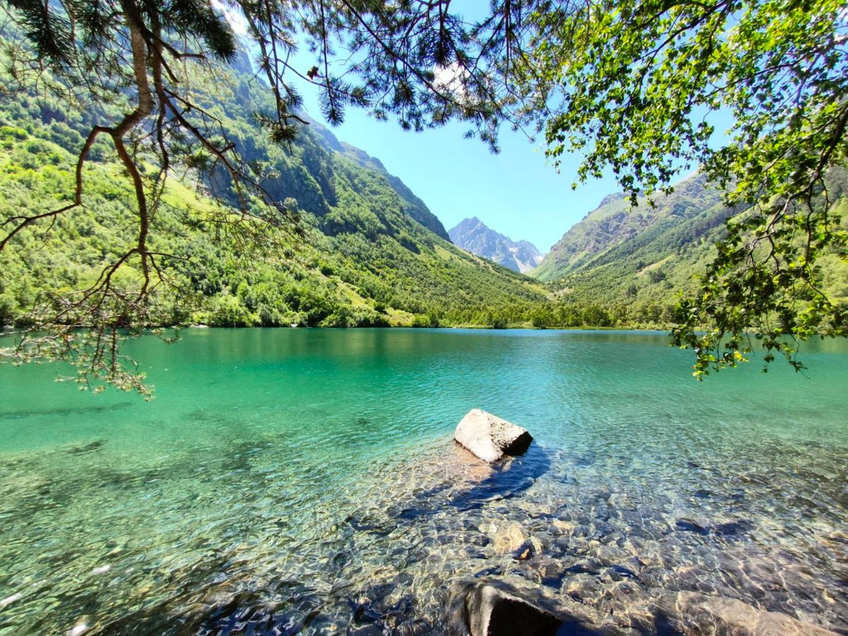 Мы отправимся по живописной тропе к Бадукским озёрам. Здесь вода меняет цвет в зависимости от погоды и времени суток, а по берегам растут вековые пихты, сосны, берёзовое криволесье и кусты кавказской черники. Даже в разгар лета температура воды не поднимается выше +10 °С, но смельчаков это не останавливает. Возможно, и вы захотите окунуться!