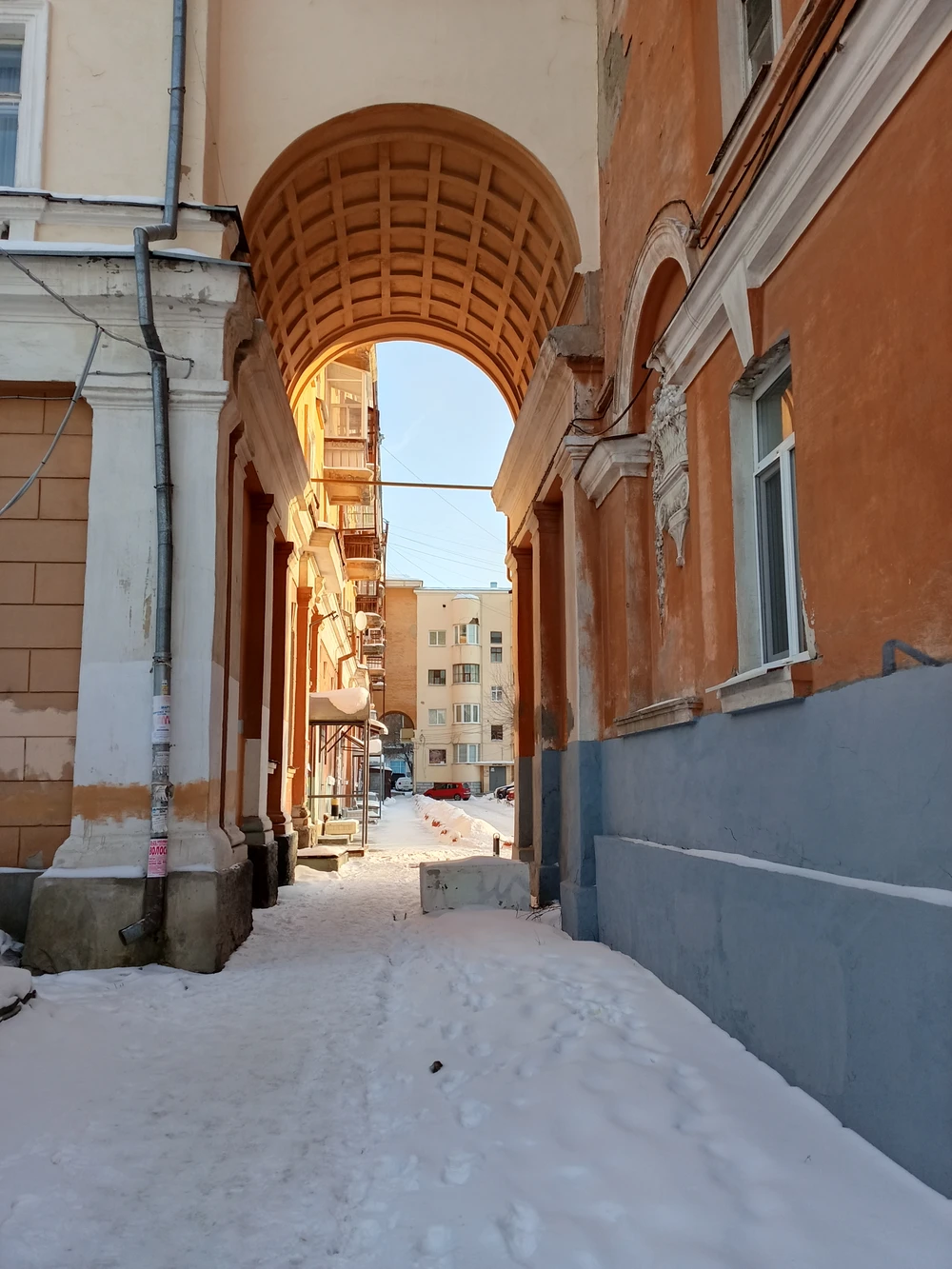 В холодное время и по вашему желанию мы можем сделать паузу в кофейне, которая находится прямо в бывшей квартире конструктивистского городка. Это лучший способ оценить масштаб окон и высоту потолков изнутри.