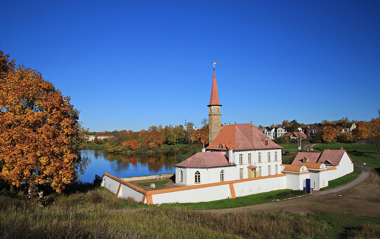Приоратский дворец (1799 г.) строился как резиденция рыцарей Мальтийского ордена, страстным поклонником которого был Павел I. В 1798 году, после захвата острова Мальта Наполеоном, русский император Павел I провозгласил себя защитником ордена и получил звание Великого магистра. В Гатчине для рыцарей-мальтийцев началось возведение Приората — европейского монастыря. Русский архитектор Н. А. Львов применил при этом уникальную технологию землебитного строительства: стены постройки выкладывались кирпичами из спрессованного грунта — фактически из земли. Оригинальным является и архитектурный стиль здания. Со стороны Чёрного озера Приорат похож на готический замок с высокой круглой башней, острым шпилем, крутыми скатами красных крыш, мансардными окнами с остроконечными козырьками. Со стороны суши чёткая геометрия силуэтов и симметричные ряды окон придают Приоратскому дворцу черты классического стиля.