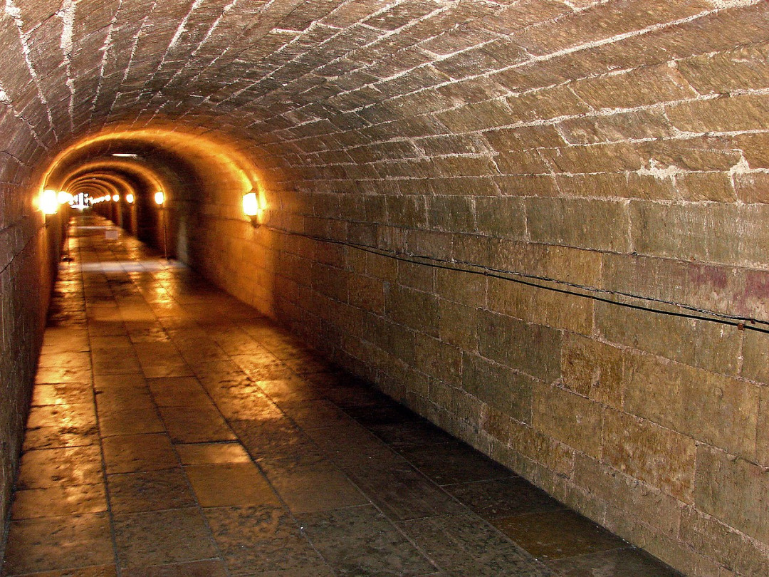 Подземный ход начинается от потайной двери на первом этаже, за ней винтовая лестница ведёт вниз, в гулкие подвалы с раскатистым эхом. Коридор шириной в 4 метра выводит на пристань Серебряного озера. Излюбленной забавой гостей Гатчинского дворца были беседы с нимфой Эхо — желающим завязывали глаза, провожали в подвал и просили громко задавать вопросы. На них эхо отвечало многократным повторением последних слогов. Сегодня на кованой двери, ведущей в подземелье, висит список вопросов для беседы с эхом: «Кто здесь правил?» — Ну конечно, Павел!