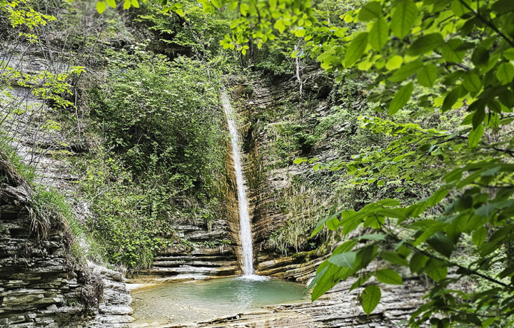 Цегельской щели. Она и подарила ему самое распространенное название. Местные называют его Шнурок из-за того, что он высокий и тонкий. Его поток не стекает каскадами, а мерно и ровно течет по ложбине, которую десятилетиями протачивал себе в скале. Все желающие могут искупаться в освежающей купели.