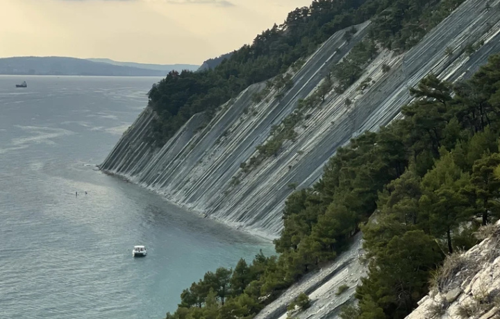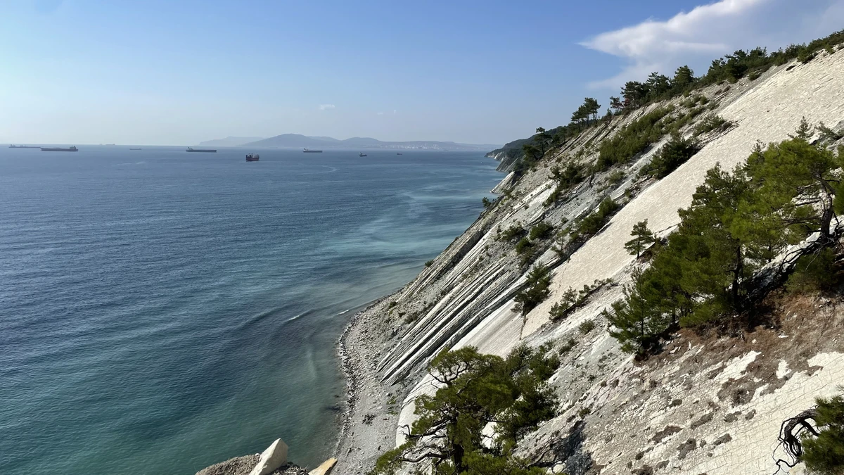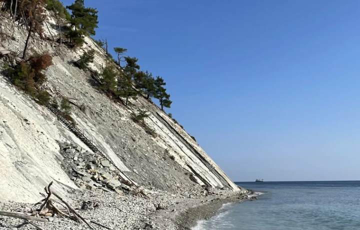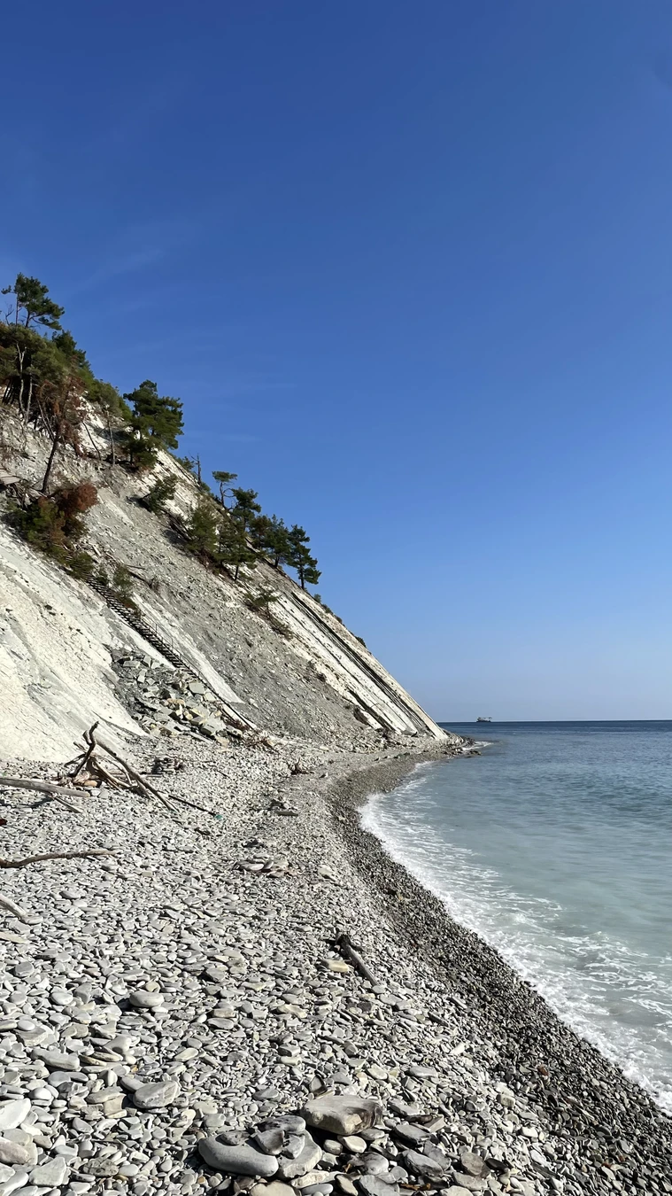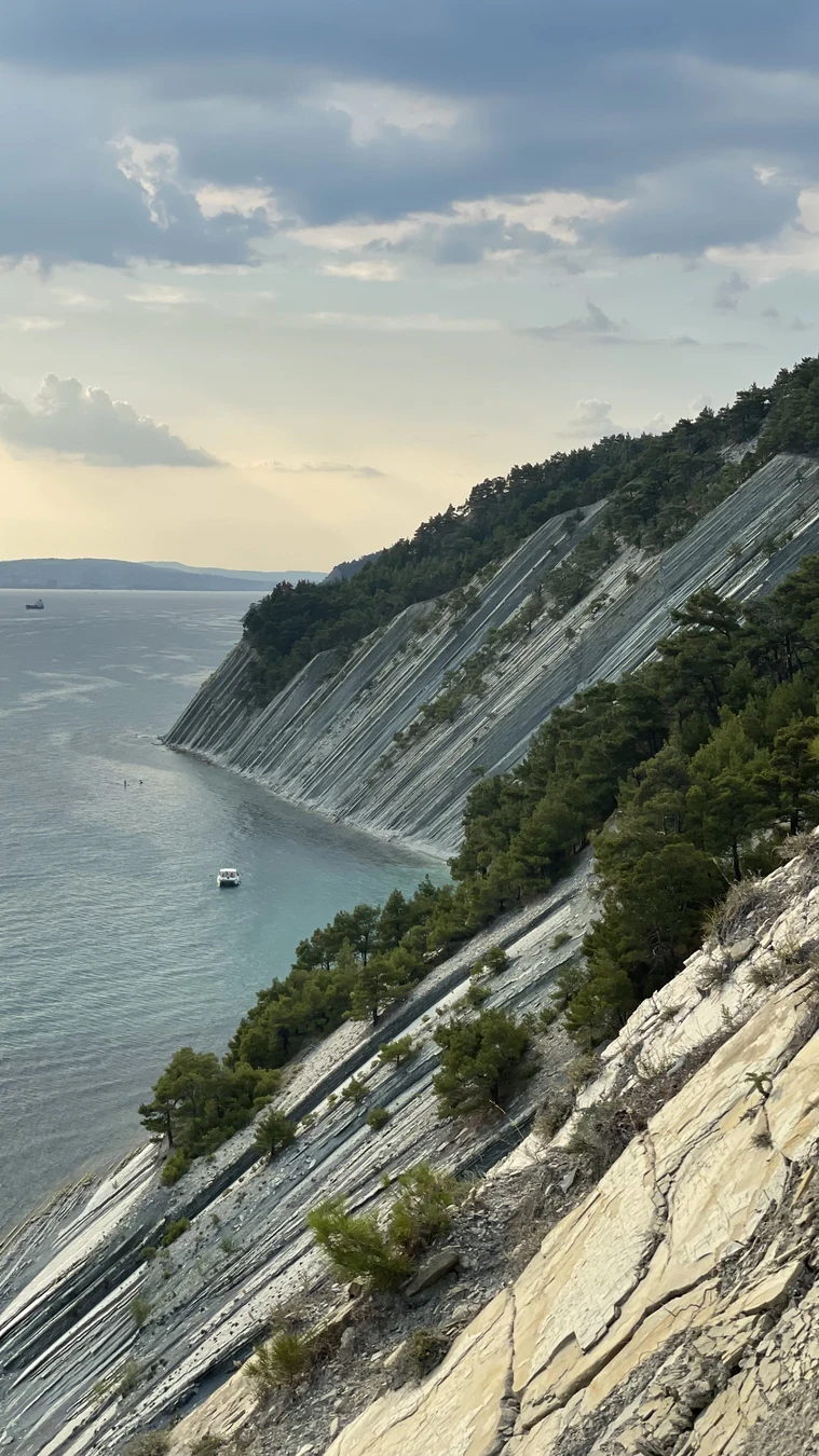 16:00 — Белые скалы, обрывистые и светлые, как снег. В хорошую погоду с них можно рассмотреть Новороссийск, Мысхако и гору Колдун