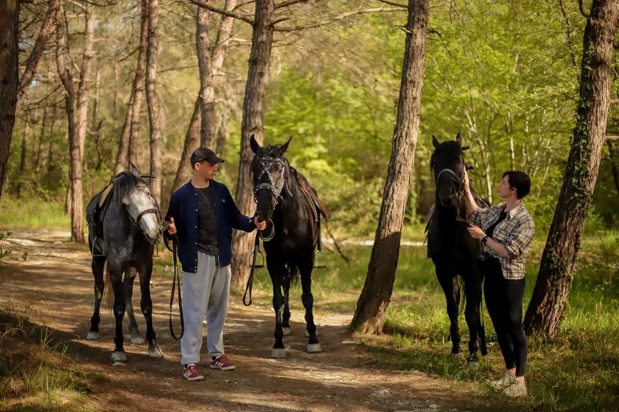 Конная прогулка к водопаду начинается со знакомства с лошадьми, инструктажем и техникой безопасностью. Маршрут проходит через сосновый бор и персиковые сады. Наслаждаясь прекрасными видами вы и не заметите как доберетесь до живописного водопада.