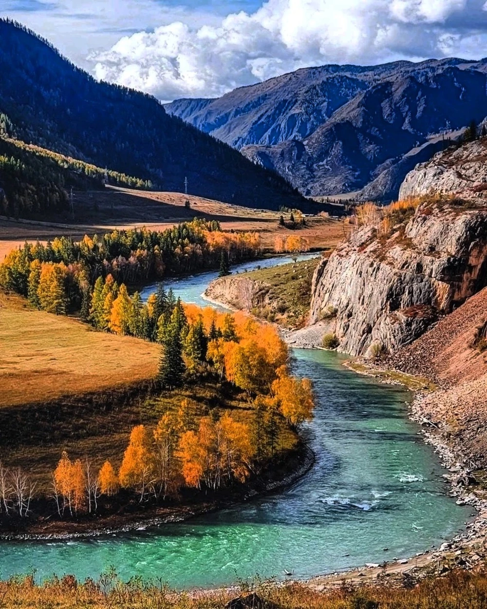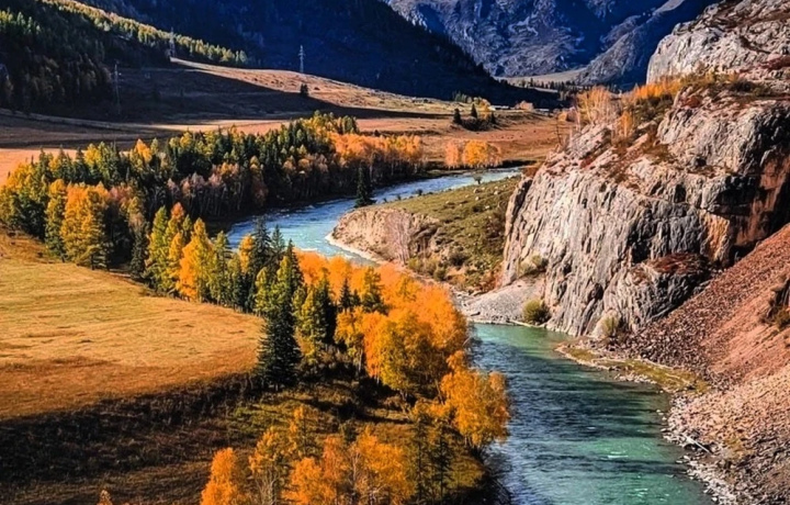 Отвесные скалы над бирюзовой рекой, где вода миллионы лет вырезала каньоны. Место для фото с «алтайским Малибу».