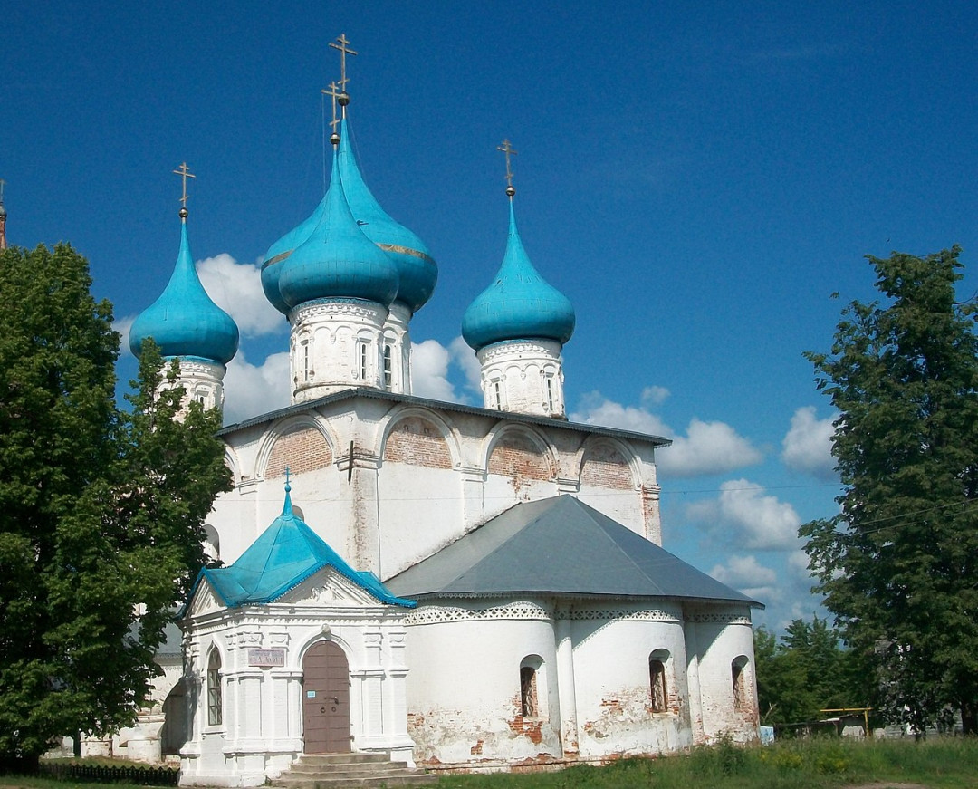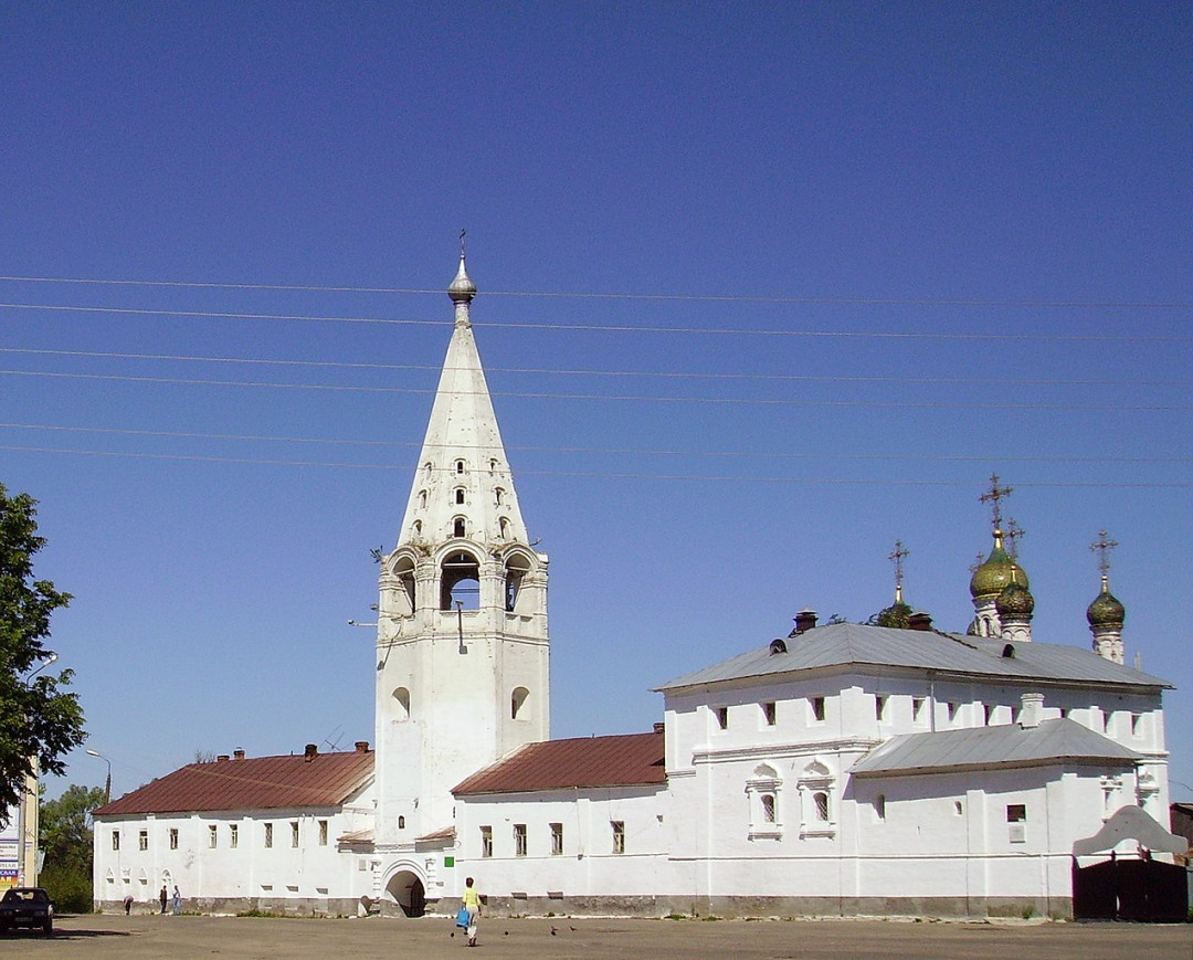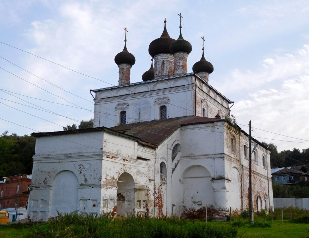 Церковь Воскресения Христова построена в особом «гороховецком» стиле между 1675 и 1700 годом на деньги местного купца и благотворителя Семёна Ершова. Храм возвели недалеко от его каменных Палат у подножия Пужаловой горы на въезде в город. Верхний престол освятили в честь Воскресения Христова, нижняя церковь называлась Введенской. Свято-Воскресенский храм отличался богатым убранством. В XVIII веке к нему пристроили колокольню, у ворот прихожан встречала Трёхсвятительская церковь. Они были утрачены в прошлом веке, как и росписи, сделанные в 1862 году.