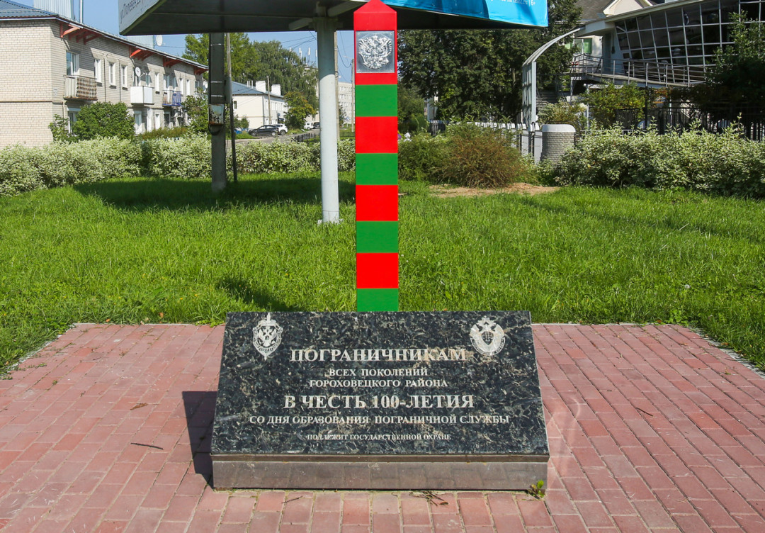 К 100-летию российских пограничных войск в сквере на улице Полевой открыт памятник Пограничникам. Инициатором создания монумента стал уроженец города, начальник погранвойск ФСБ Владимир Маслов. Памятник весьма лаконичен — двухметровый пограничный столб раскрашен в яркие красные и зелёные полосы. В верхней части стилизованного пограничного столба сияет рельефное изображение герба Российской Федерации, у подножия установлен постамент с надписью: «Пограничникам всех поколений Гороховецкого района».