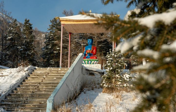 На границе Бурятии с Иркутской областью мы остановимся у ступы Даши Гоман — «Множество дверей счастья». Задобрив львов, которые оберегают это место от сил зла, вы повращаете молитвенные барабаны Хурдэ: этот ритуал принесет умиротворение и покой.