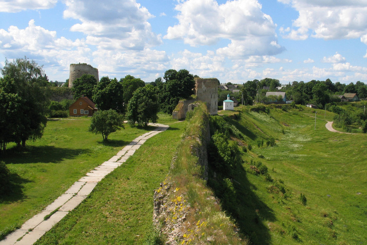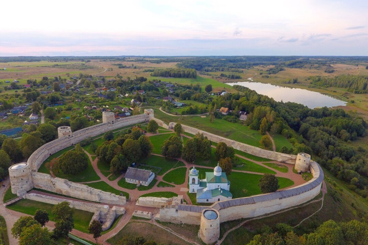 Изборская крепость построена на Жеравьей горе в 1330 году для защиты западных границ Руси от постоянных набегов захватчиков. За полтора столетия цитадель выдержала восемь осад. После окончания Северной войны в 1721 году крепость утратила стратегическое значение и больше ста лет была заброшена. В середине XIX века оборонительные сооружения были отремонтированы, у Никольского собора появилась новая колокольня, трапезная.