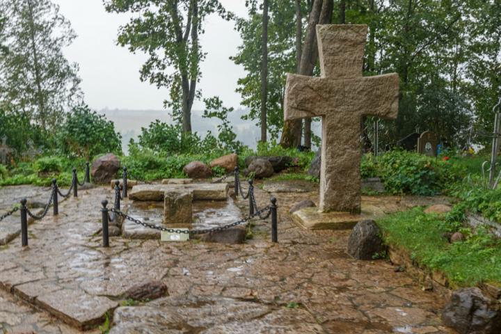 Труворов крест — главная загадка древнего городища, с которого началась история Изборска. Он высечен из цельного камня и установлен на плите. Три конца креста слегка расширяются от центра к краям. Рядом лежат две плиты, на которых высечены геометрические фигуры. На одной из них нарисован правильный квадрат с вписанным в него другим квадратом поменьше.