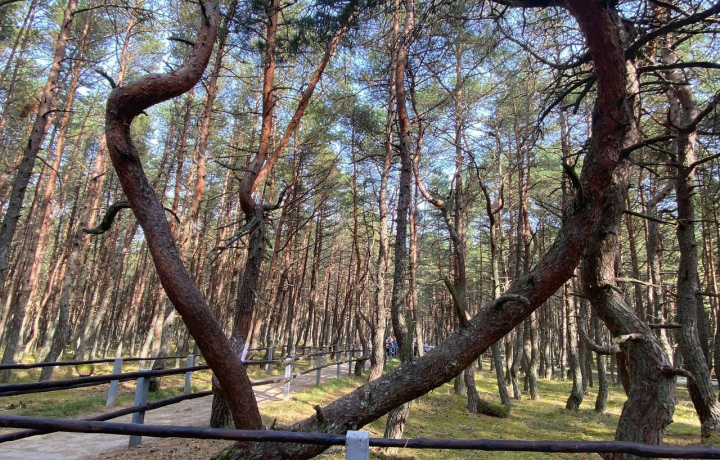 Увидим «Танцующий лес», где растут сосны с необычно изогнутыми и скрученными стволами, как будто в танце, — трудно представить, что заставляет хвойные деревья в этом месте так «танцевать».