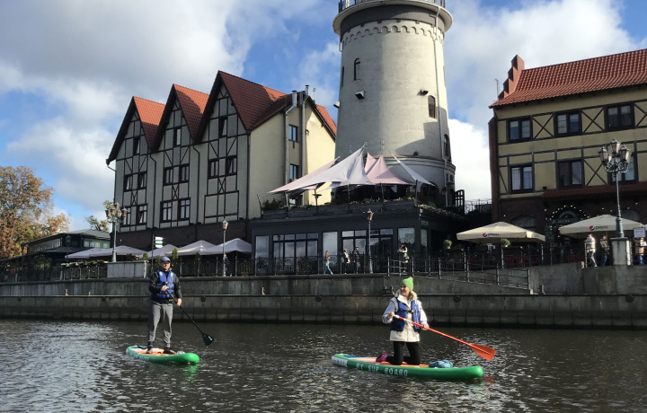 Мы встанем на сапы и по реке Преголя отправимся к Медовому мосту. Поплывём вдоль ухоженной набережной, полюбуемся на величие Кафедрального собора и возьмём курс на Музей Мирового океана. Конечно, в гидрокостюмах заходить не будем, но вы послушаете о важнейших вехах развития Калининграда и достопримечательностях, которые будут видны то слева, то справа по борту. Минуя колоритную Рыбную деревню, мы отправимся к Высокому мосту и там завершим прогулку. По пути найдётся время и для фотосессии, и для приятного отдыха на речных волнах.