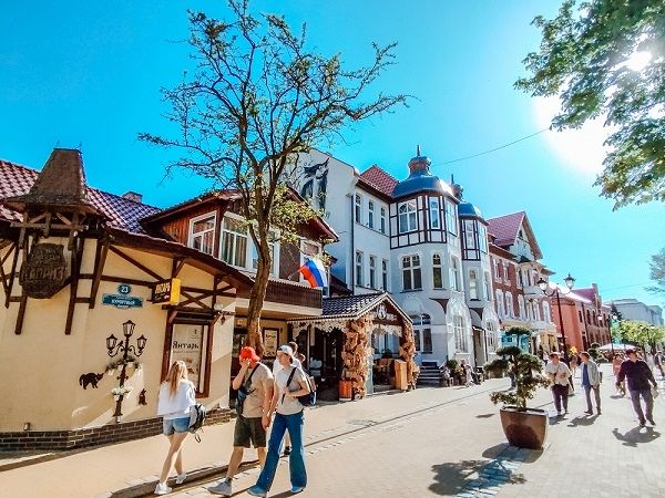 Народу тьма...особенно в Зеленоградске...в основном всё везде одинаково...марципан, янтарь, кафе...