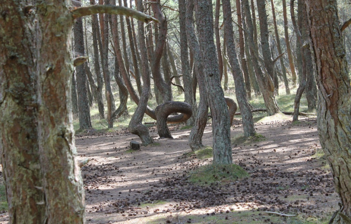 Прогуляемся по загадочному Танцующему лесу, где сосны изгибаются в причудливых формах. Одни видят в них танцующие фигуры, другие — зверей и сказочных существ. Учёные до сих пор не пришли к единому объяснению этого феномена.