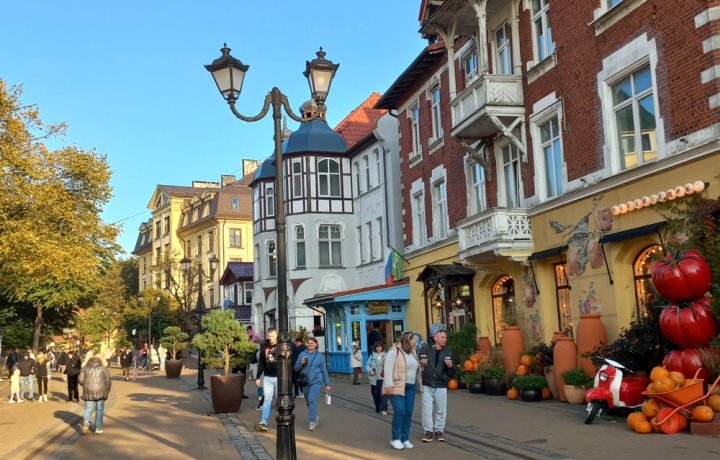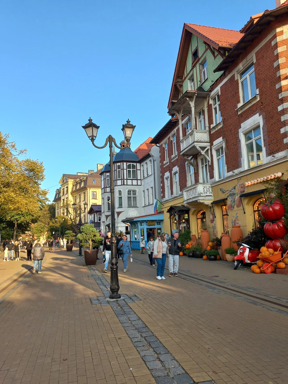 Но кроме этого хочу отметить один очень существенный момент. В анонсе экскурсии на сайте сказано: "Мы сможем пообедать на свежем воздухе в ресторане, где подают свежайшую рыбу из Куршского залива. Я расскажу о судьбе Зеленоградска, покажу местные граффити с котиками и объясню, почему на гербе города изображены лосиный рог и камбала. Закончить путешествие предлагаю в кафе в деревенском стиле (в меню самолепные вареники, пельмени и пирожки) или в теплом кафе с видом на море".