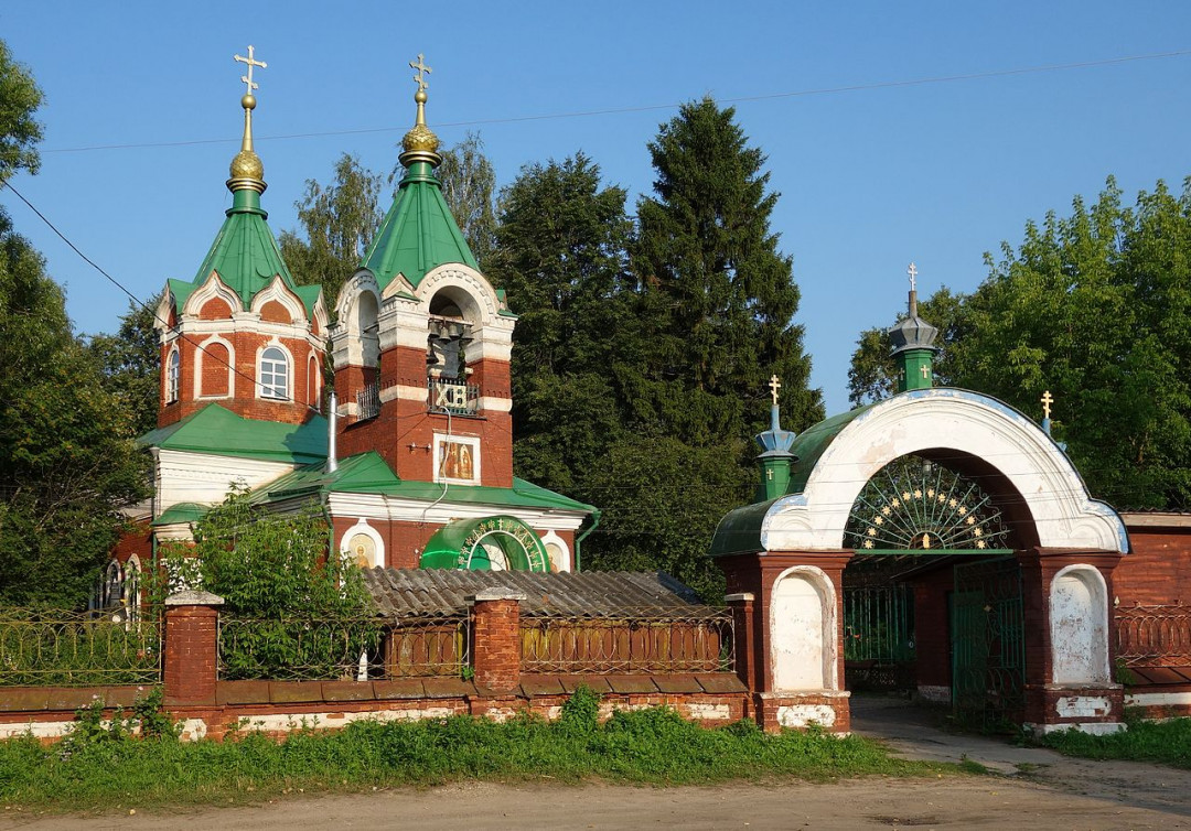 Каменная Введенская церковь была построена в 1882 году на месте обветшавшего кладбищенского храма. Губернский инженер-архитектор В. И. Кузьмин придал эклектичному зданию черты русского стиля. Красный восьмерик и колокольню венчают зелёные шатровые купола с маковками и крестами. Световой барабан украшен кокошниками, арочные окна четверика и трапезной — белыми лепными наличниками. В 1890 году храм был расписан. Внутри сохранился оригинальный двухъярусный иконостас с позолоченными деталями.