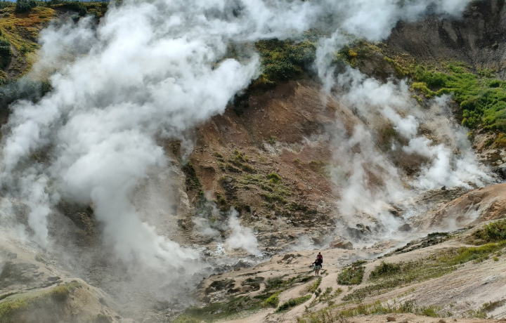 Во время экскурсии вы узнаете об отличиях гейзеров от пульсирующих источников, особенностях термальных площадок, о краснокнижных обитателях местности, о строительстве и возможностях Мутновской ГеоЭС.