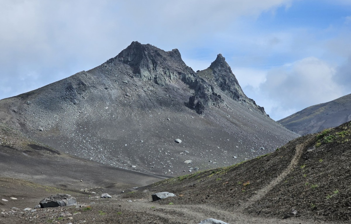 На протяжении маршрута нам повстречаются все виды рельефа, с которыми сталкиваются в более сложных походах — от практически плоской равнины до крутого подъёма по снежнику и спуска по сыпучему шлаку.