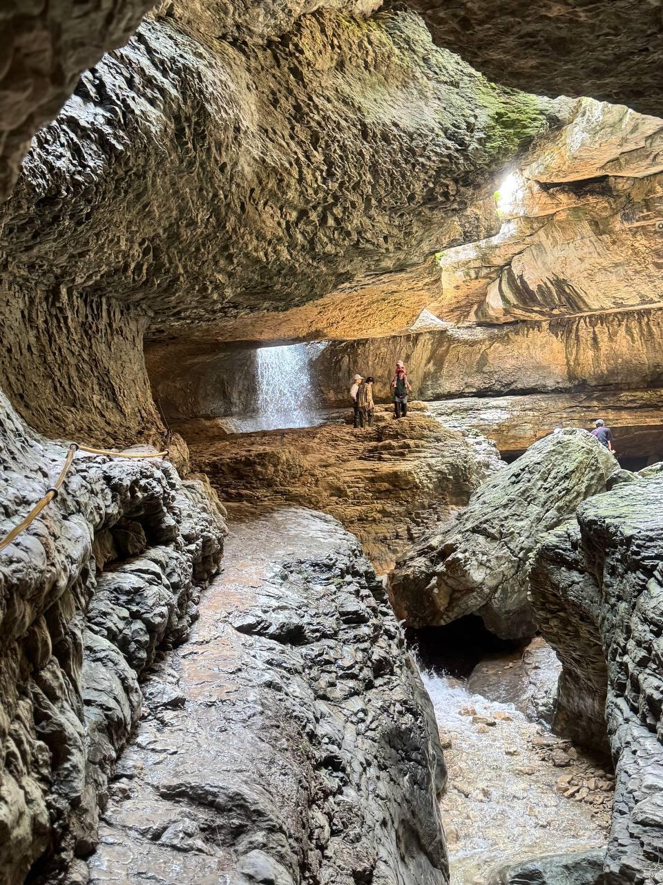 Протяженность теснины 500 м, а ее ширина — около 40 м. Здесь с 20 м высоты падает красивейший водопад, а по естественным туннелям протекает река.