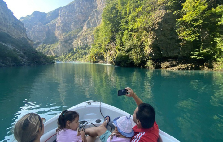 После того как полюбуемся на красоту каньона сверху, вас ждет невероятное водное приключение — прогулка на катере по Чиркейскому водохранилищу.
