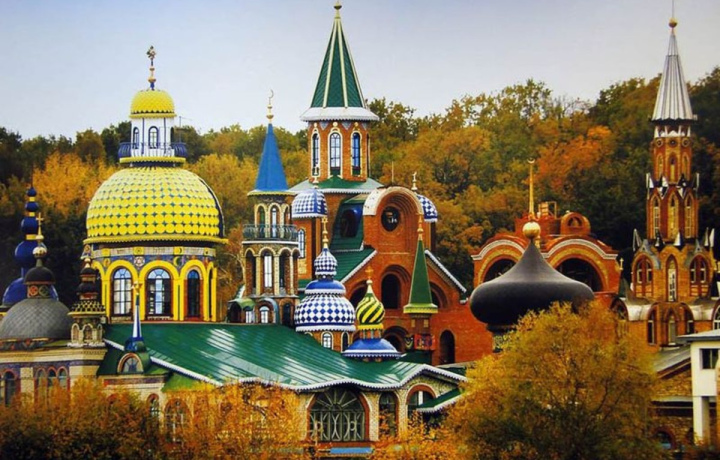 Главные мечети и соборы Казани возведены ещё в эпоху Средневековья, но храм, с которым вам предстоит познакомиться на экскурсии, построен всего 20 лет назад. За это время Храм всех религий успел стать одним из самых необычных туристических мест Казани благодаря красочной, причудливой архитектуре и уникальной концепции. В её основе — идея, что все религии мира — едины, все они созданы для того, чтобы вести людей к миру и свету. Вы удивитесь, как смело в одном строении сочетаются, казалось бы, несочетаемые элементы, характерные для 16 религий (в том числе и исчезнувших).