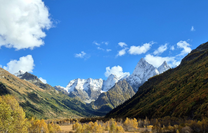 Вы проведете целый день, любуясь красотами Карачаево-Черкессии. Подниметесь на самый высокогорный в России перевал Гум-Баши, через который проложена автомобильная дорога, полюбуетесь на Кавказский хребет и гору Эльбрус, посетите древний храм Х века и отведаете блюда местной кухни.