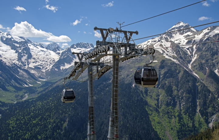 - Домбайская поляна. Её окружают 3 ущелья — Аманауз, Алибек, Домбай-Ульген. Именно отсюда начнётся наш подъём к вершине Домбая на канатной дороге. На финальной станции вам откроются захватывающие панорамы этих ущелий.
