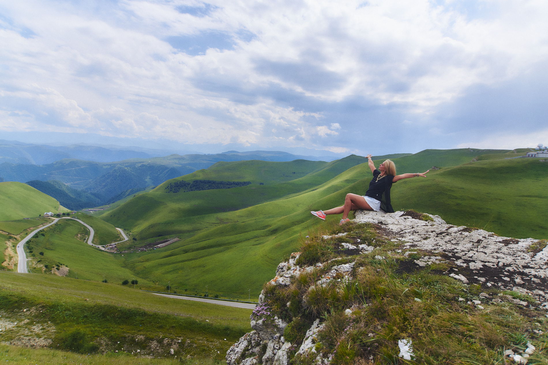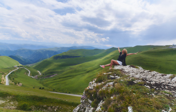 да и сама дорога — потрясающее приключение и отличная фотозона, где можно бегать, прыгать и лежать. Всего 72 км, но через три региона, 2000 метров перепада высот и серпантины, от которых захватывает дух (в прямом смысле).