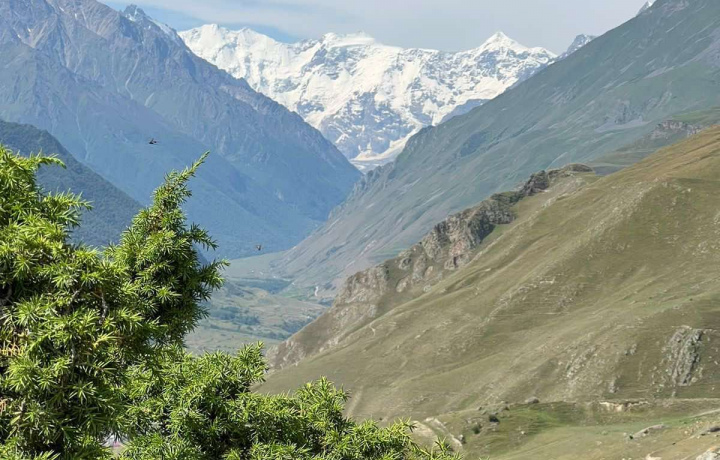 Первую остановку сделаем на смотровой площадке у перевала Гумбаши. Отсюда вам откроются незабываемые панорамы Кавказского хребта во главе с Эльбрусом.