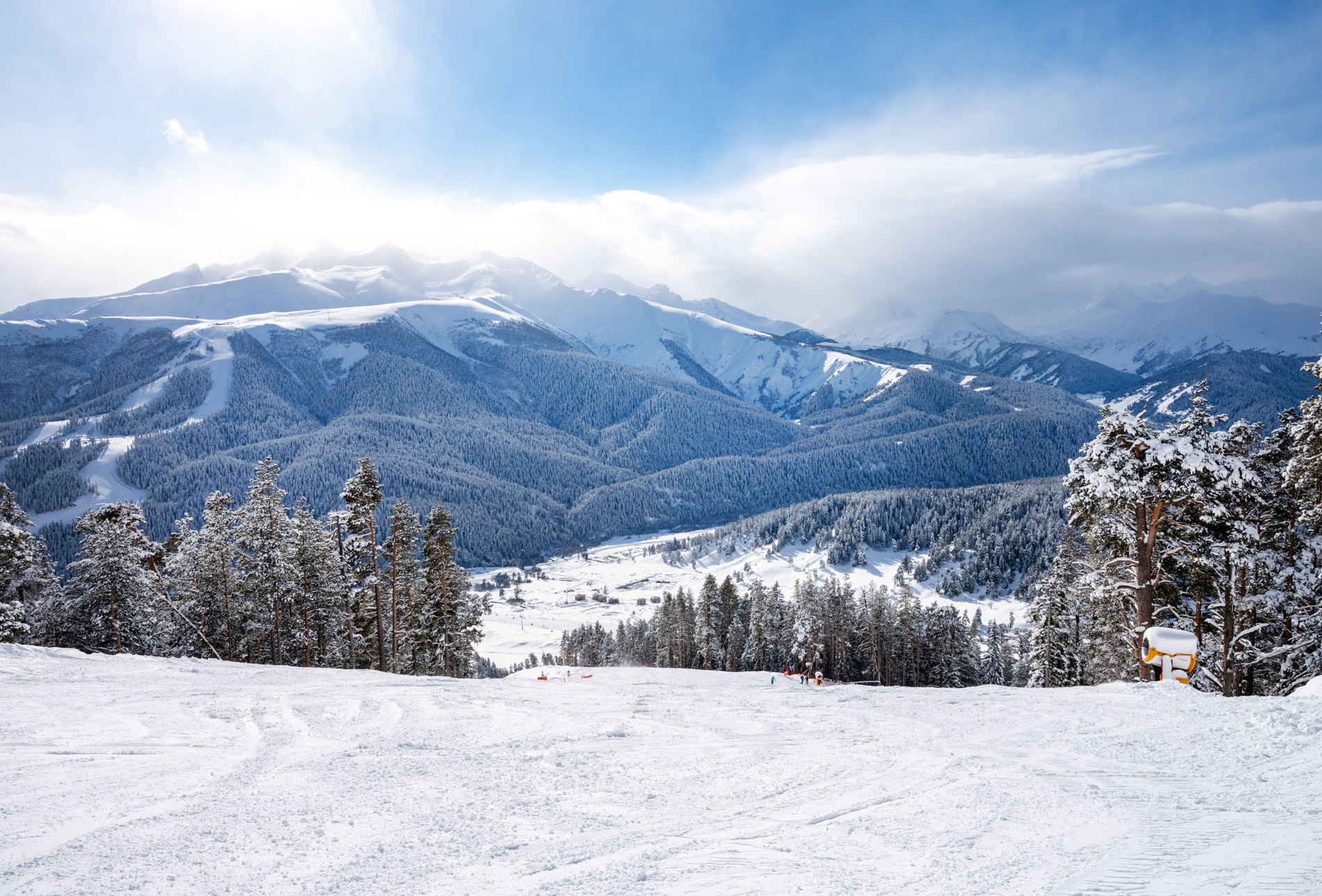 курортный поселок Романтик, где вы сможете подняться по канатной дороге на смотровые площадки, чтобы окинуть взглядом макушки вершин, ледников и поросшие лесами склоны.