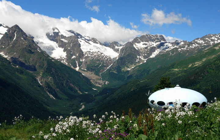 Наконец, вы доберетесь до поселка Домбай, расположенного на высоте 1600 м. над уровнем моря. Уникальное место, где несколько ущелий Кавказа сходятся в одной точке, образуя Домбайскую поляну. Дальнейший путь — на канатных дорогах к фантастическим обзорным площадкам на склоне горы Мусса-Ачитара, куда каждую зиму устремляются тысячи любителей горнолыжного спорта. Ну а цель нашего маршрута — насладиться видами на Главный Кавказский Водораздельный хребет.