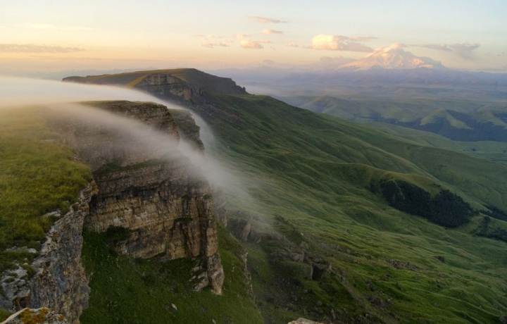 Эльбрус от плато находится всего в 30 км, поэтому кажется, что до него можно подать рукой. А еще здесь потрясающие рассветы и закаты, поэтому лучше подгадать так, чтобы застать один из этих грандиозных моментов.