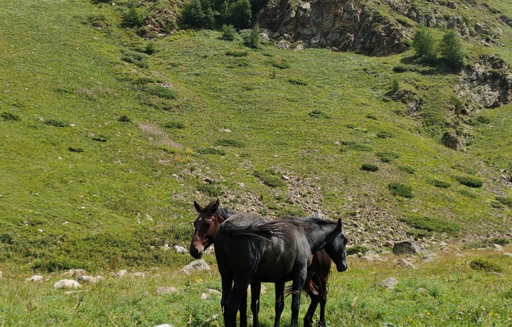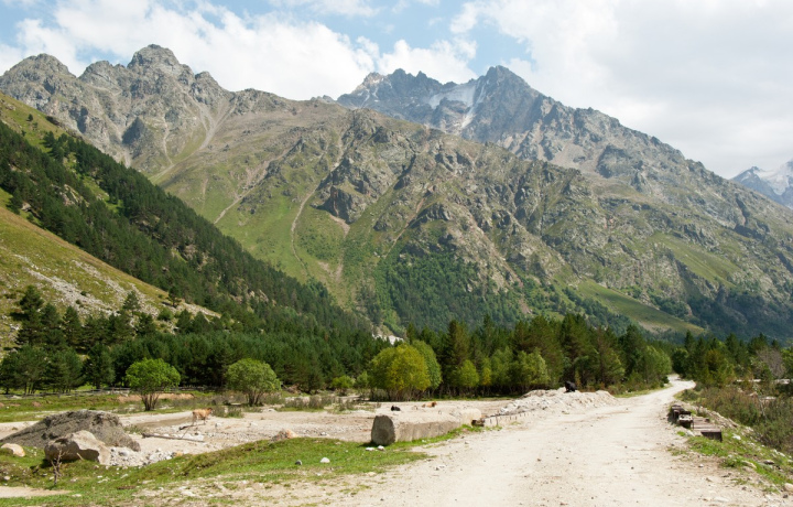 Вас ждет 14 км легкого бездорожья вдоль речки со сказочными, постоянно меняющимися видами. Это заповедник, поэтому здесь немудрено встретить горных коз и других животных. Поднявшись к альплагерю с одноименным названием Уллу Тау, оставим авто, оформим пропуска, пройдем пограничный контроль (совсем рядом грузинская Сванетия) и дальше отправимся пешком. Несложный получасовой поход в окружении лесов, рек, камней и могучих гор приведет к поляне желаний, где каждый загадает заветное.