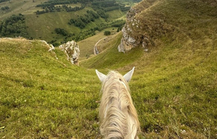Были на конной прогулке 25.09.2025. Отправлялись и возвращались в село Элькуш, примерно 20 мин езды от Кисловодска. Всё очень понравилось. Группа было 10 чел. Лошади у всех были спокойные, прощающие неопытность седоков.) Места, по которым ехали очень красивые, фото всей красоты не передают. Сопровождающие джигитв вообще выше всяких похвал, скучать в дороге не дают)).