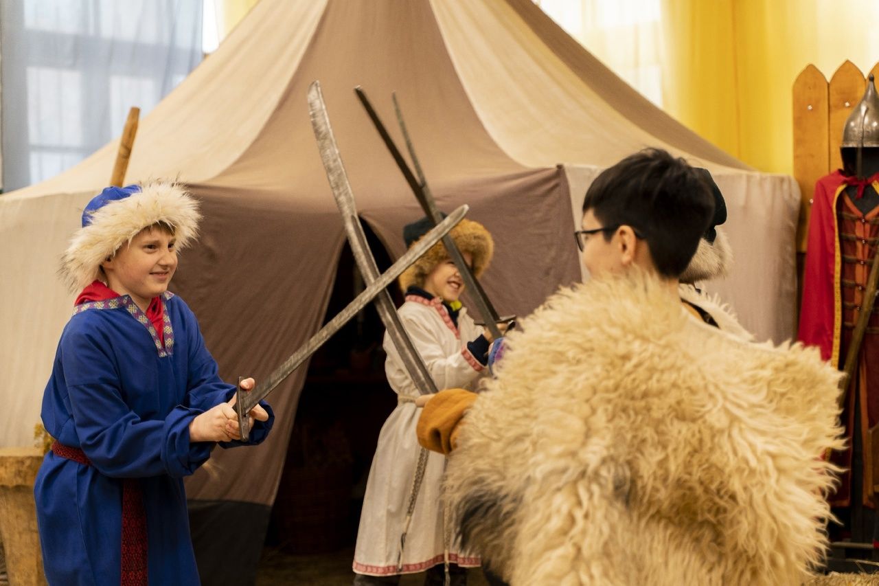интерактив «Костюмерная». Вам представится возможность познакомиться с предметами быта русского средневековья, облачиться в доспехи русских воинов, примерить костюмы княгини и боярыни, а после этого