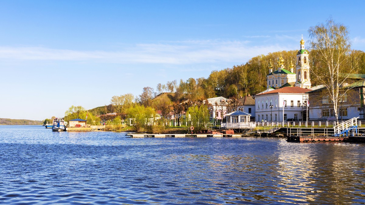Сюда мы доберёмся, переправившись через Волгу на пароме вместе с микроавтобусом. И вот мы в городе, где живёт всего около 2000 человек, но который издавна притягивает к себе художников и музыкантов, артистов и модельеров, предпринимателей и туристов. Вы увидите необычный рельеф Плёса, веками определявший его судьбу — от главного форпоста московского княжества на Волге в 15 в. до города-курорта в 19–21 вв.