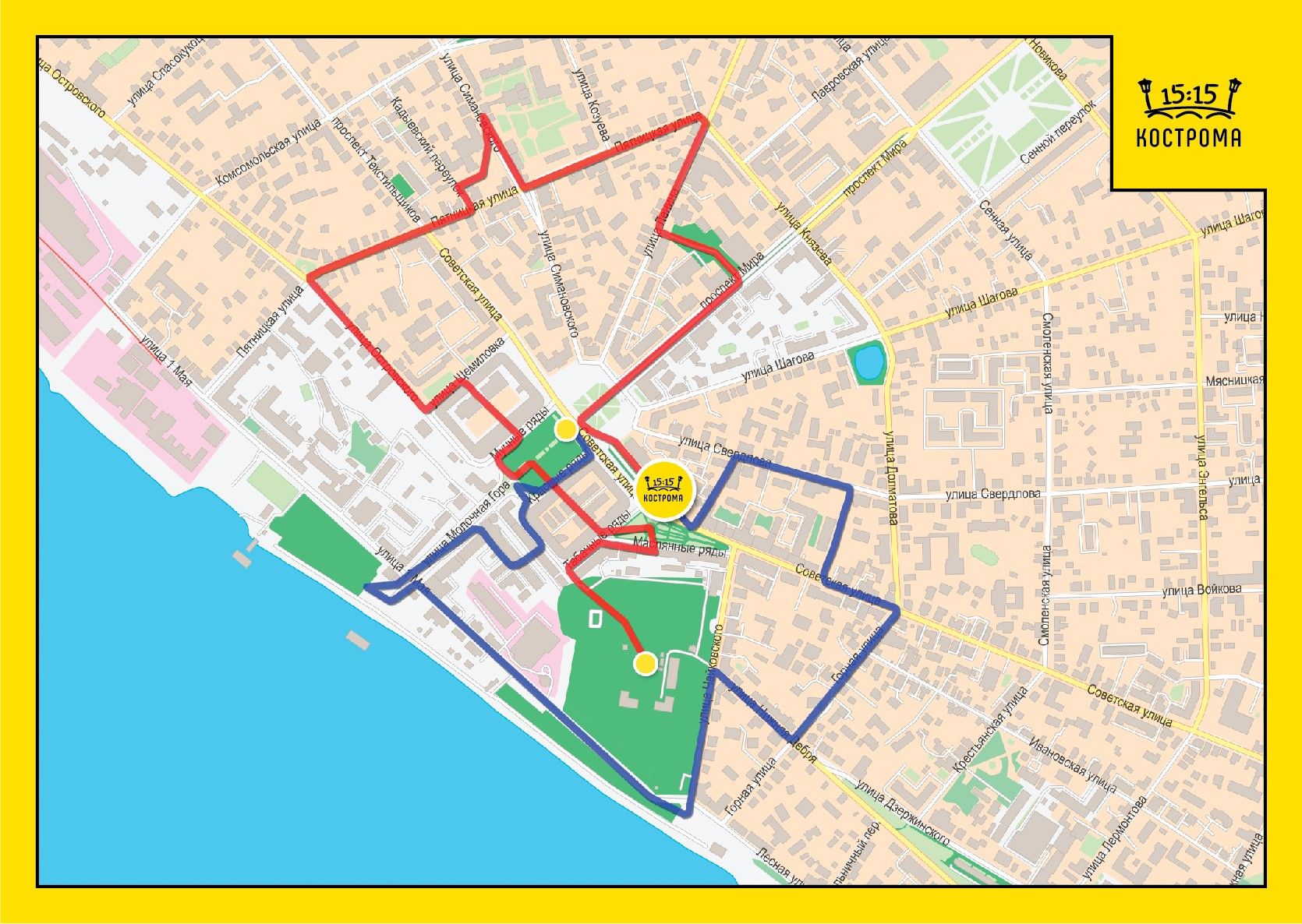 Отправьтесь на индивидуальную пешеходную экскурсию, которая раскроет перед вами Кострому с разных сторон — как древний город с богатой историей, так и место, где кипит современная жизнь. Вы сами выбираете один из двух авторских маршрутов — синий или красный, — каждый из которых проведёт вас по знаковым достопримечательностям и откроет увлекательные, подчас неожиданные истории. Вас ждёт знакомство с главными символами города: