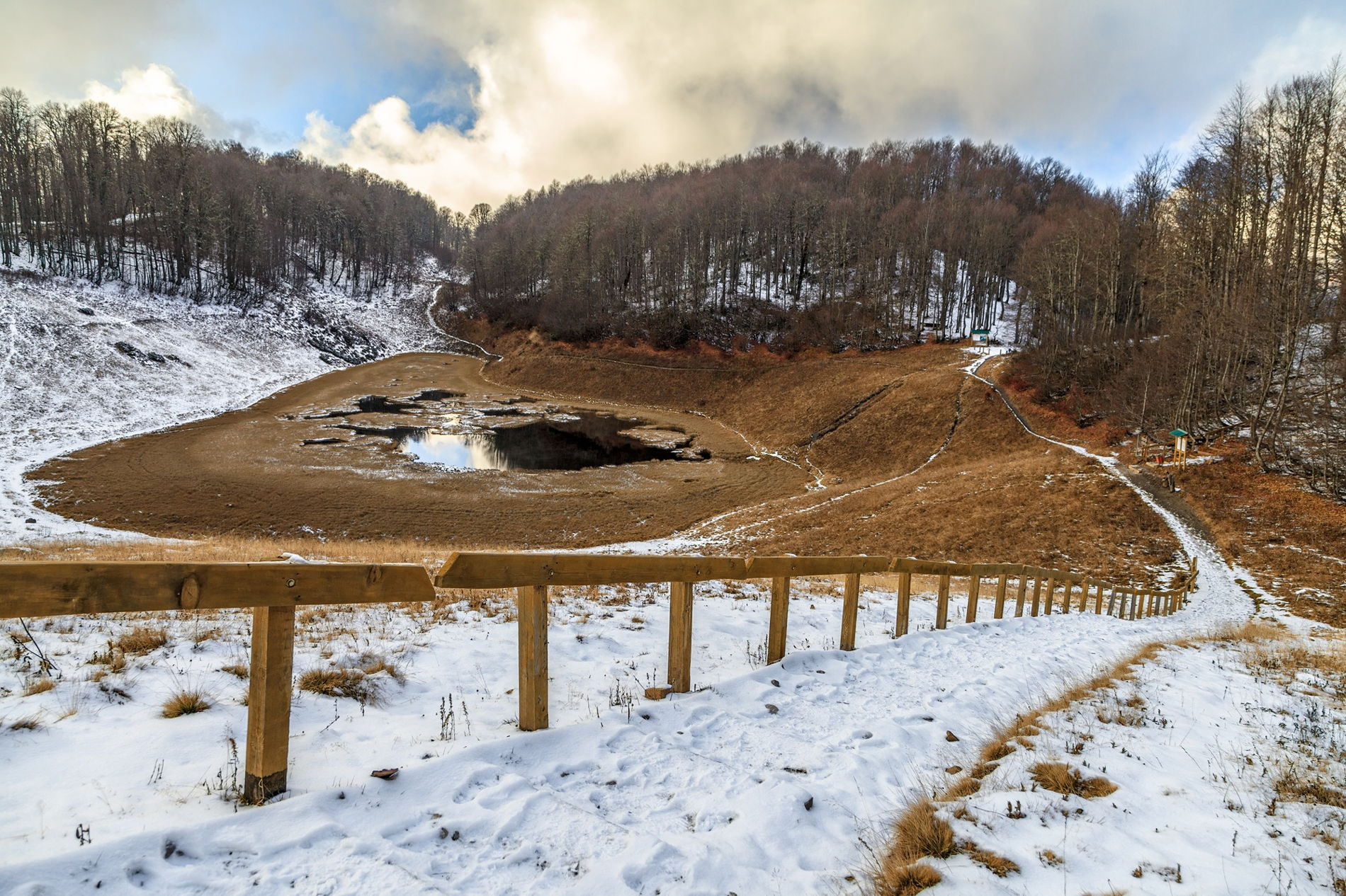 Нас ждёт путь к Хмелёвским озёрам — отдалённым от курортов, но невероятно живописным местам. По пути мы будем останавливаться на смотровых площадках с видами на посёлок Красная Поляна, северные склоны хребта Аибга и олимпийский трамплин «Русские Горки».