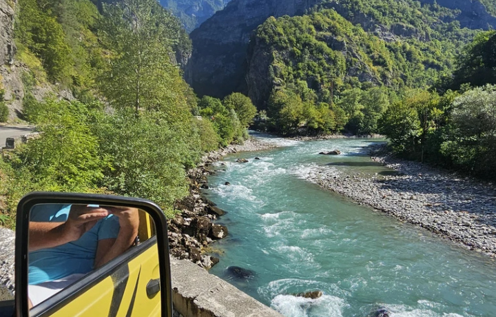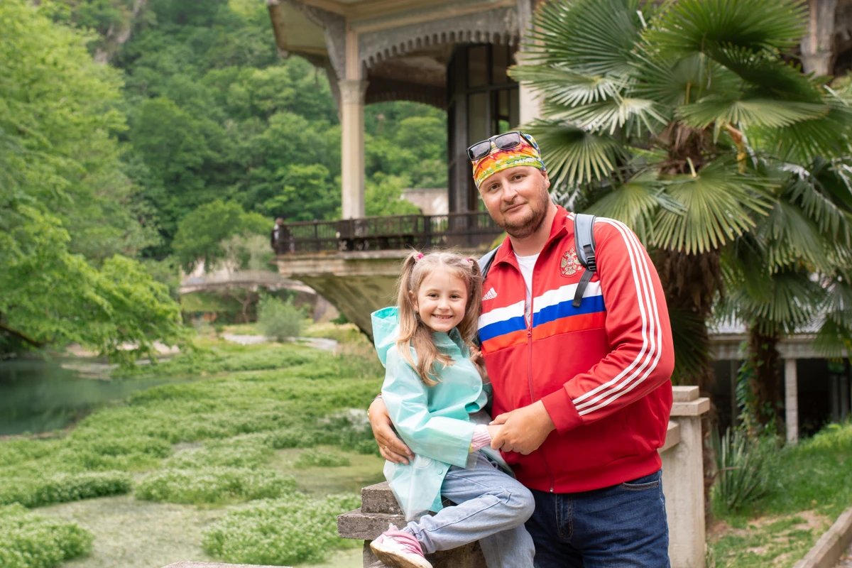 Это одна из самых живописных частей маршрута. Вы увидите Голубое озеро, проедете через Юпшарский каньон, остановитесь у водопада Мужские слёзы и подниметесь на смотровую площадку «Прощай, Родина», чтобы полюбоваться горами. У озера Рица прогуляетесь и, если захотите, прокатитесь на катамаране. Любители острых ощущений смогут прыгнуть с тарзанкой над рекой Бзыбь.