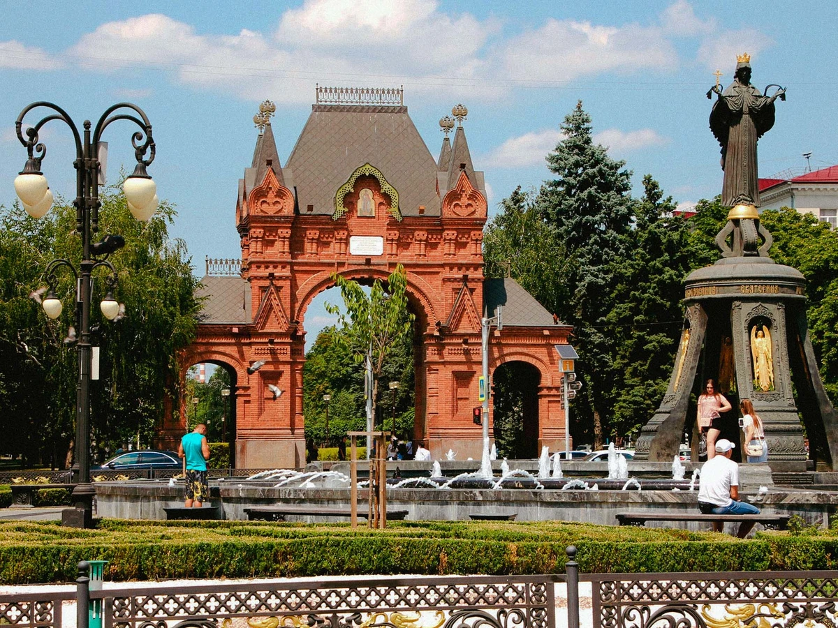 На главной площади рассмотрим академический театр, поющий фонтан и мемориал, посвящённый 200-летию Кубанского казачества. По желанию заглянем в лучшую пирожковую.