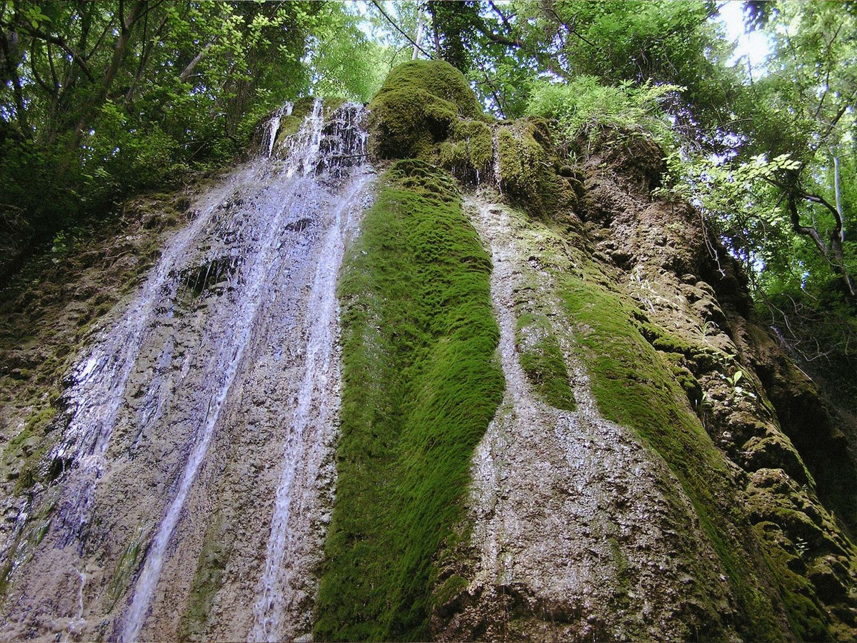 Природный каскад редкой красоты. Второе название — Гебиусские водопады — дано по имени соседней горы высотой более 735 метров. На протяжении километра по руслу реки Тешебс расположены семь водопадов. Три из них особенно впечатляют: