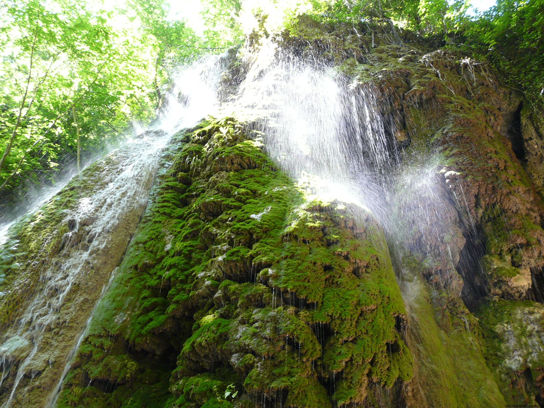 По лестнице можно легко подняться на его вершину. Второй водопад — «Грот» — высотой 6 метров. Из широкой скалы, с небольшими пещерами, вытекают ручейки, сливаясь воедино в большую, каменную чашу. Третий водопад — «Пасть дьявола» — самый высокий, около 20 метров. Он назван так, потому что выливается между двух плит известняка, издавая такой шум, что полностью оправдывает своё название. Можно по лесенке спуститься на дно ущелья, где каждый будет поражён сказочной красотой этих мест. А дальше вас будет ждать Дерево желаний «Игольное ушко», где сбываются все загаданные мечты. Здесь же устроено кафе для небольшого привала, перекуса и катания на верблюде, которого зовут Вася. Прогулка доставит особое удовольствие в знойный летний день — густая крона деревьев и прохладные брызги воды уберегут вас от солнечных лучей и жары.