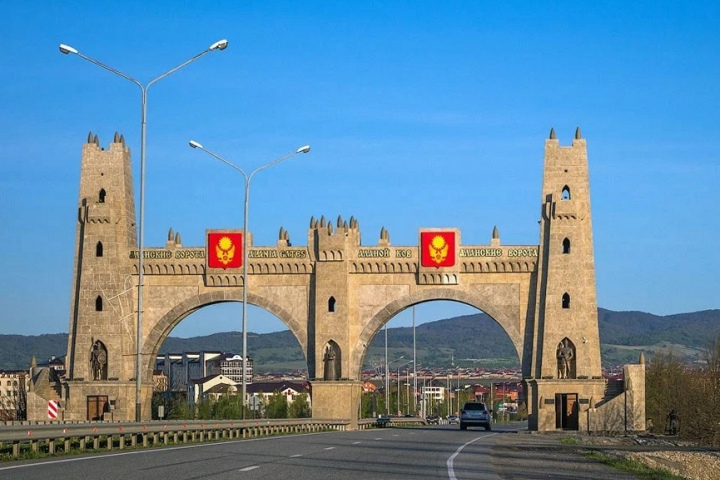 «Аланские ворота» — въездная арка в молодую столицу Ингушетии, выполненная в стиле ингушской башенной архитектуры. Сооружение, торжественно открытое в 2015 году, представляет собой центральную и две боковые башни, которые соединены между собой арочными пролётами. Центр каждого свода украшает герб Магаса.