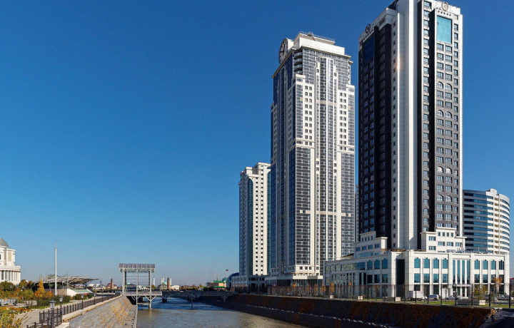 Президентский дворец построен в 1998 году как резиденция главы Республики Ингушетия. В то время это было первое и единственное здание государственно административного комплекса будущей столицы. Сооружение в восточном стиле с боковыми крыльями напоминает шатёр. Зеркальный фасад увенчан позолоченным куполом. Президентский дворец расположен на одной оси с Башней Согласия и является архитектурной доминантой площади Алании.