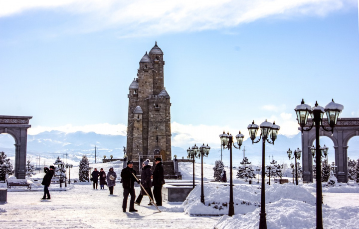 Башню Согласия воздвигли в Магасе в 2013 году. Она построена в стиле средневековой ингушской башни. В прежние века такие сооружения были символами определённого тейпа и использовались для защиты родовых земель. Башня Согласия имеет несколько иную концепцию. Она олицетворяет единство ингушского народа.