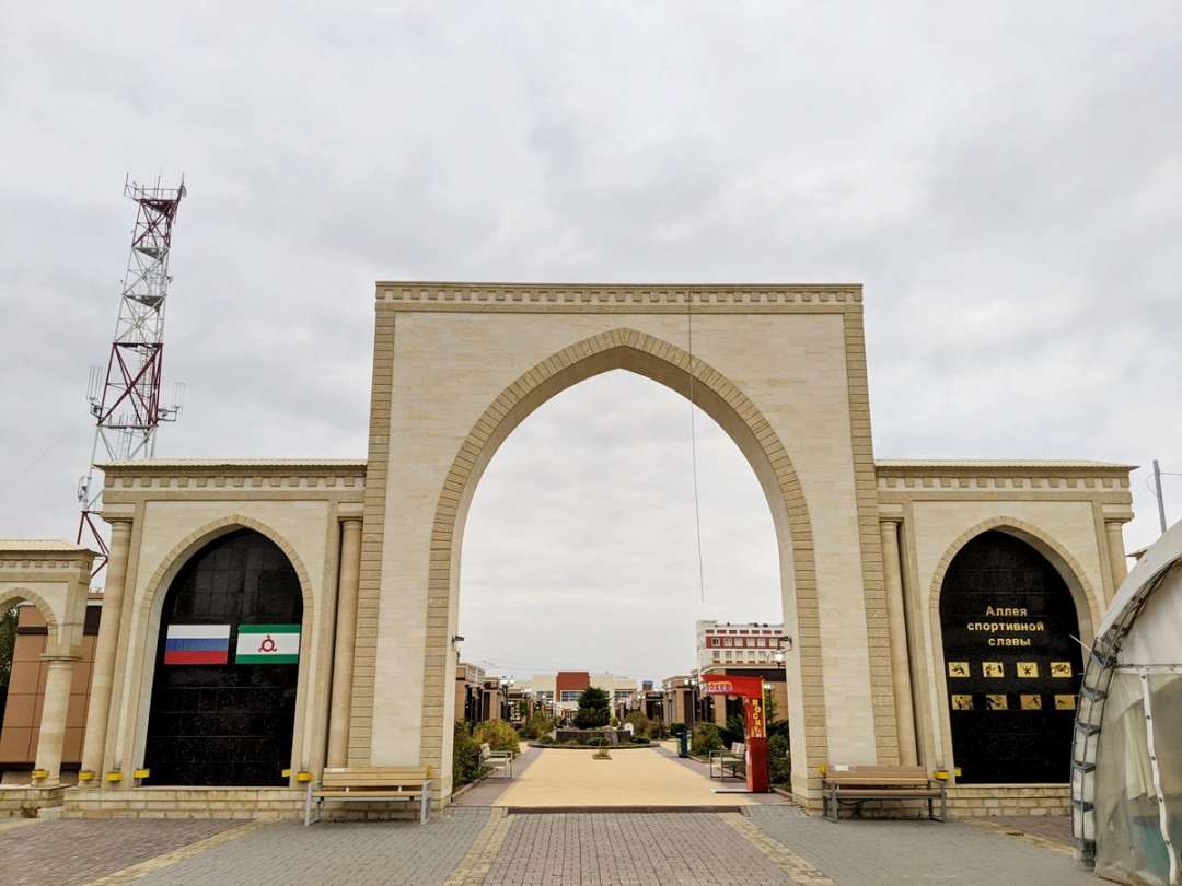 Аллея спортивной славы протянулась от проспекта Зязикова в сторону набережной Сунжи. Вдоль прогулочной зоны установлены именные таблички прославленных спортсменов с отпечатками их ладоней. Большинство звёзд являются победителями и призёрами Олимпийских игр. Открытие Аллеи состоялось в 2015 году в присутствии именитых российских спортсменов и главы Республики Ингушетия Юнус-Бека Евкурова. Ежегодно Аллея спортивной славы пополняется новыми именами выдающихся спортсменов России и Ингушетии.