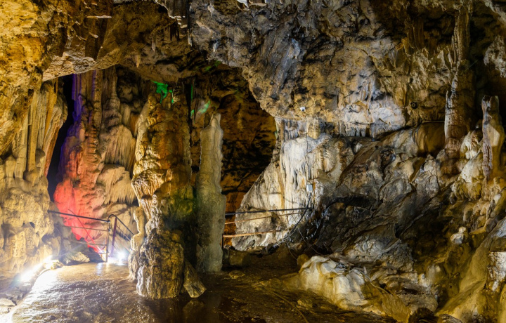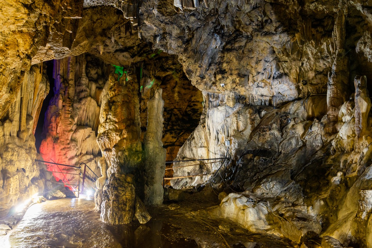 Около 40 минут проведём здесь — посмотрим на сталактиты и сталагмиты, что образуют причудливые формы.