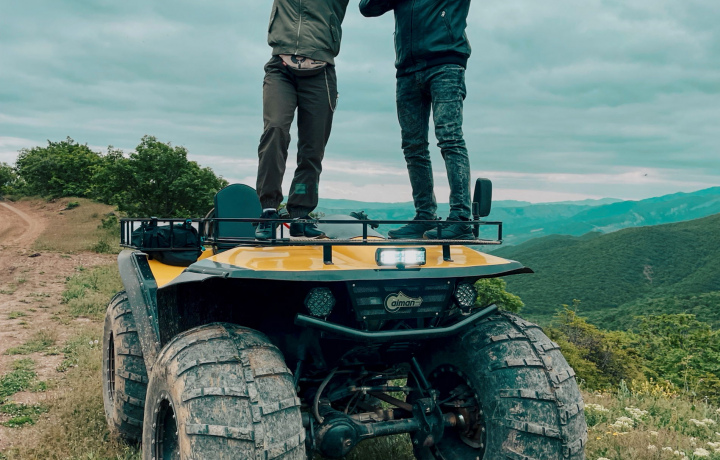 - По квадроциклам распределяемся парами: опытные водители спереди, пассажиры сзади. Если у всех есть навыки вождения, вы просто будете меняться — это удобно, поскольку вы сможете отдыхать и любоваться видами, не думая о дороге.