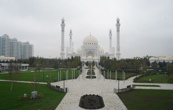 Это самая большая мечеть в Европе, и её внешний вид поражает своей величественностью. Мечеть расположена в центре города Шали. Фасад здания покрыт белым мрамором, который был привезён из Греции. Четыре минарета имеют высоту 63 метра каждый, а купол 43 метра. Внутри мечеть расписывалась мастерами вручную, что придаёт ей невероятно завораживающий вид. Интересный факт: летом, покрытая белым мрамором мечеть, отражает солнечный свет и дарит городу прохладу.