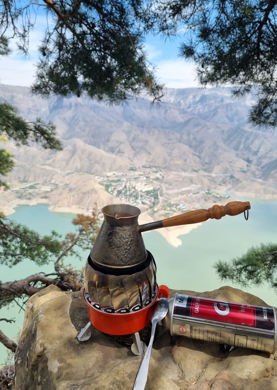 Полюбуемся рукотворным морем, зажатым в каменных тисках. Будет время для кофе и перекуса.