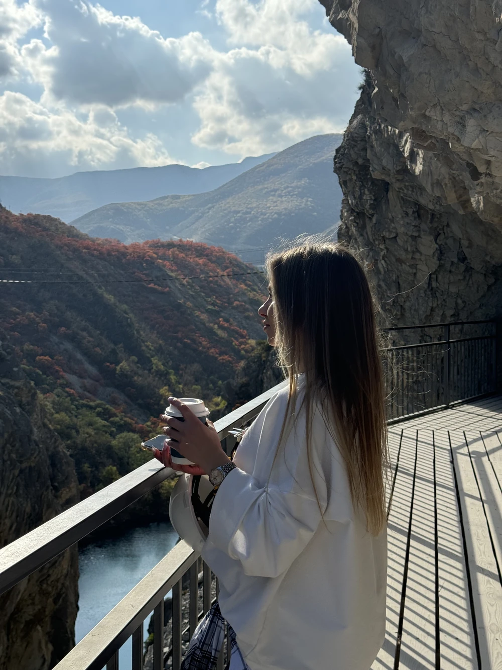 Спустимся вниз через дубовую рощу: по дороге вас ждут две остановки. На одной можно покачаться на качелях прямо над пропастью. А на второй полюбоваться видом на реку Сулак, выходящей из каньона, выпить чай из местных трав и познакомиться с осликами.